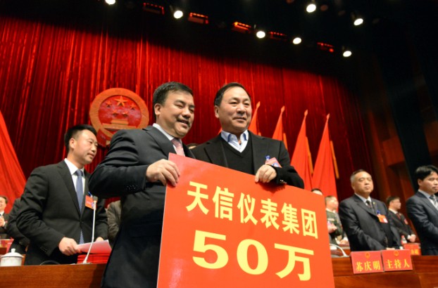 本網(wǎng)訊:2014年2月25日,蒼南縣兩會召開當(dāng)天,蒼南縣“我愛我家、五水共治”首場捐資儀式在縣人民大會堂舉行。會議呼吁大家聚合力,強措施,治五水,讓蒼南的天更藍(lán)、山更綠、水更清。 五水共治,各企業(yè)家勇?lián)蓬^兵。公司總裁范叔沙作為縣人大代表和民營企業(yè)家代表公司現(xiàn)場捐贈50萬元,為建設(shè)山青水秀家鄉(xiāng)貢獻(xiàn)了一份力量。